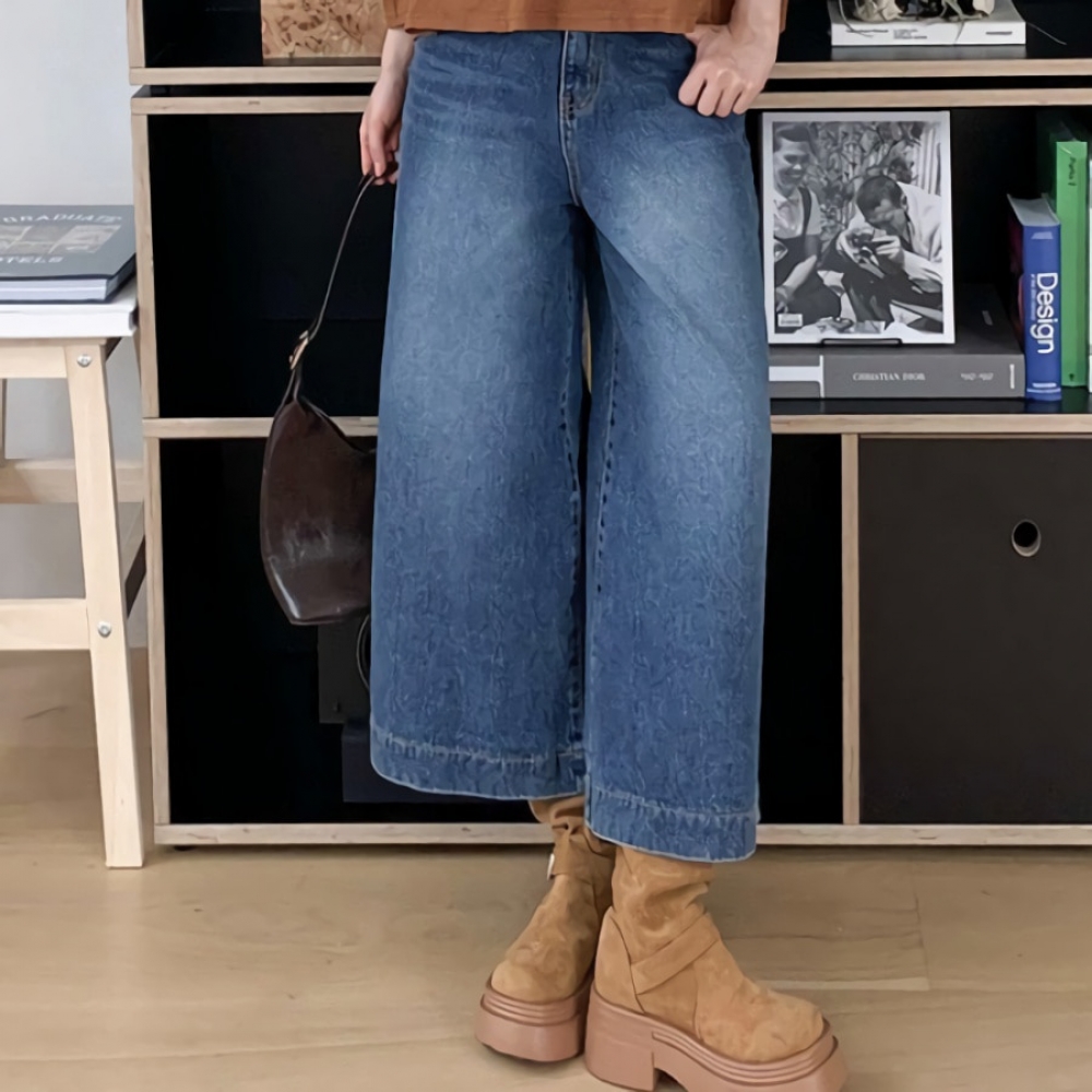 여성 워싱 스트레이트 와이드 데님 팬츠