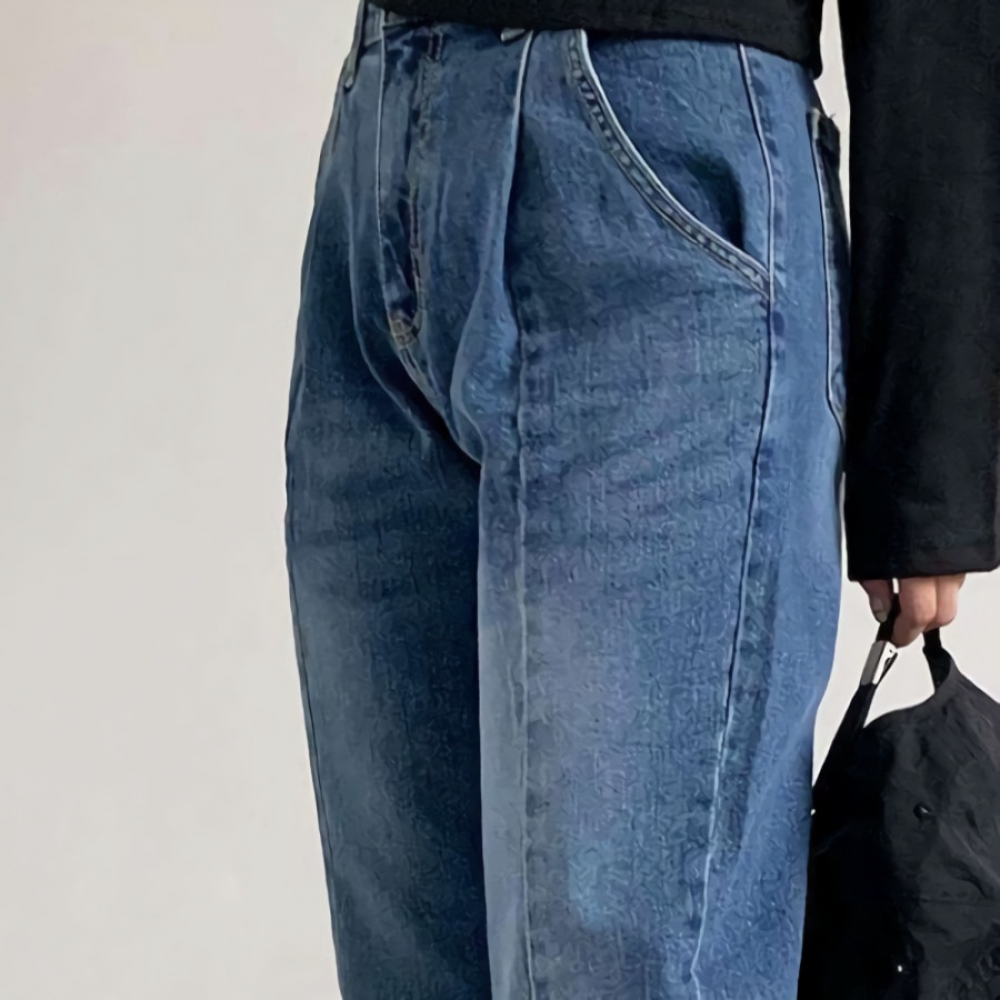 여성 워싱 스트레이트 와이드 데님 팬츠