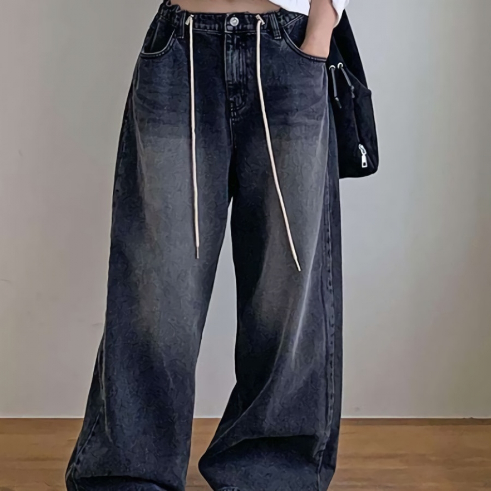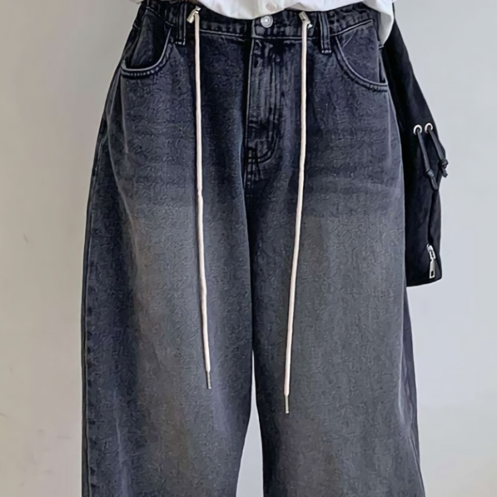 여성 허리 스트링 빅 와이드 데님팬츠