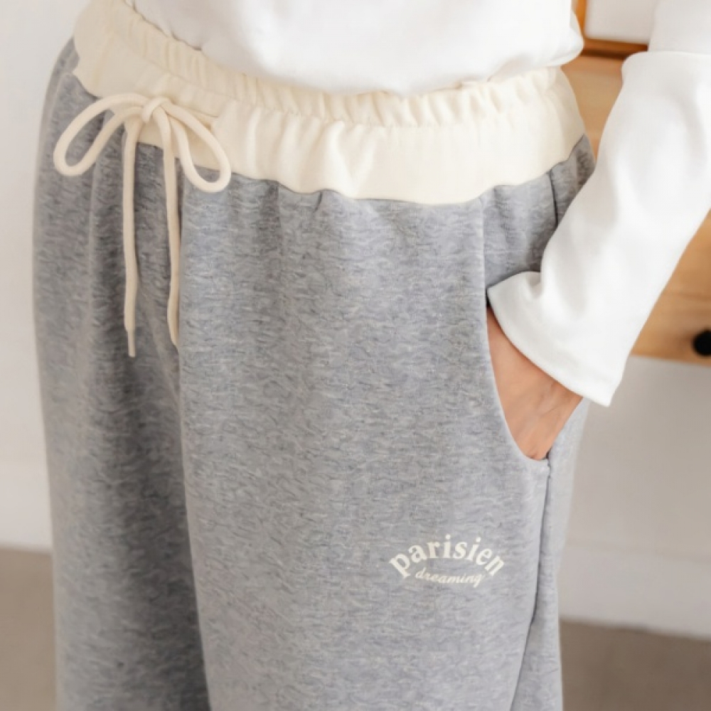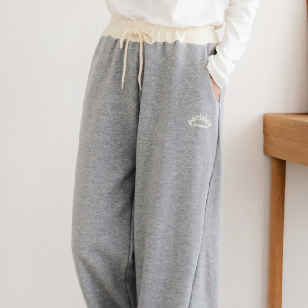 여성 밀크 쭈리 배색 레이어드 밴딩 팬츠