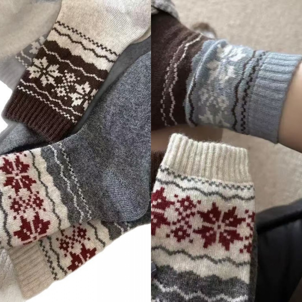 여성 겨울 눈꽃 울 배색 빈티지 양말