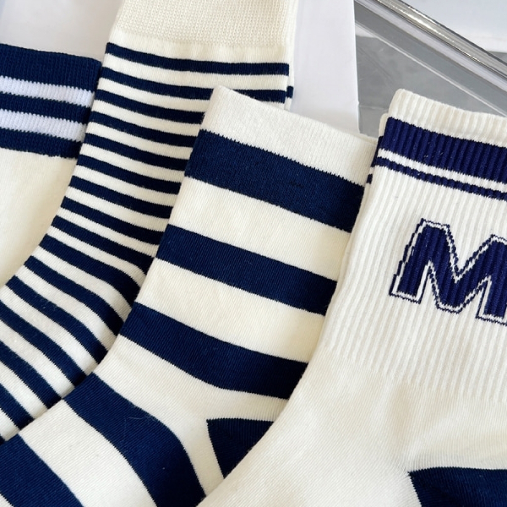 심플단가라 여성 중목 양말 5켤레 세트