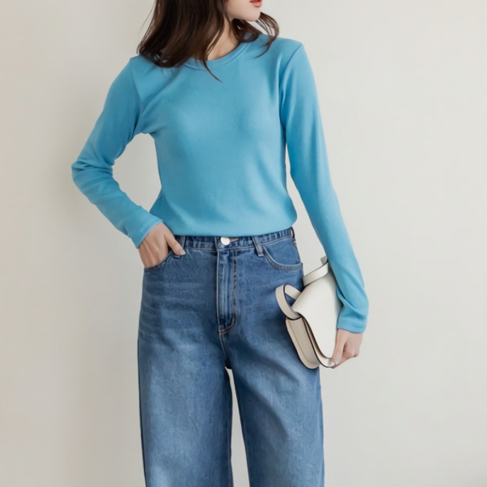 여성 퍼니 베이직 기본 골지 라운드 티셔츠
