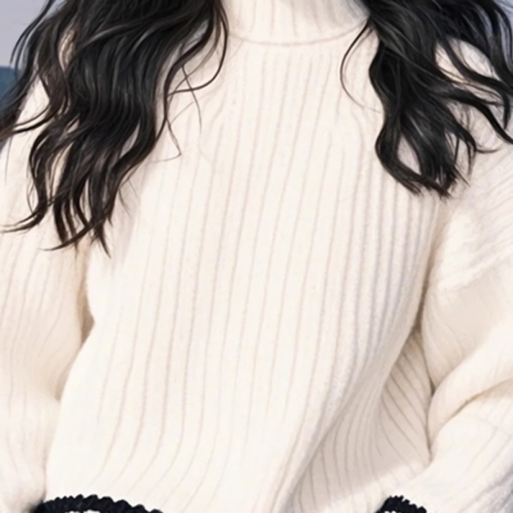 데일리 화이트 배색 하이넥 루즈핏 니트 스웨터