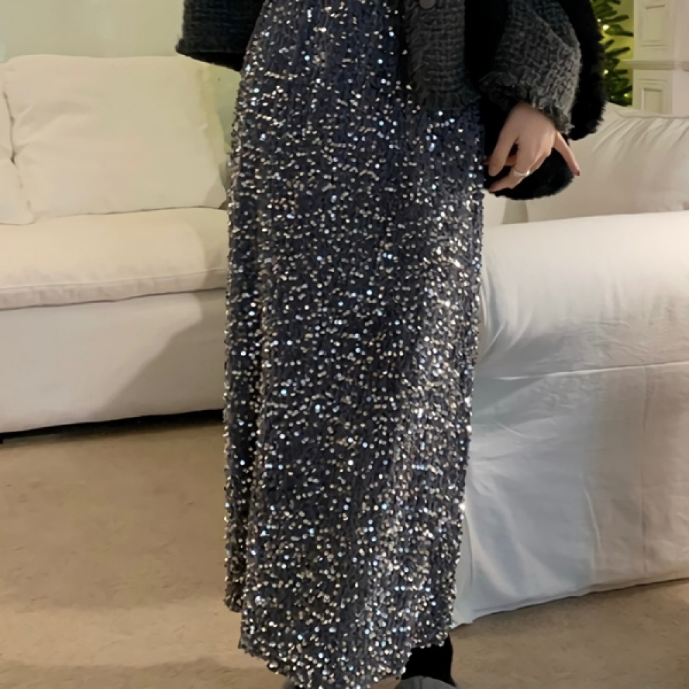 여성 봄 데일리 스팽글 트임 롱 스커트