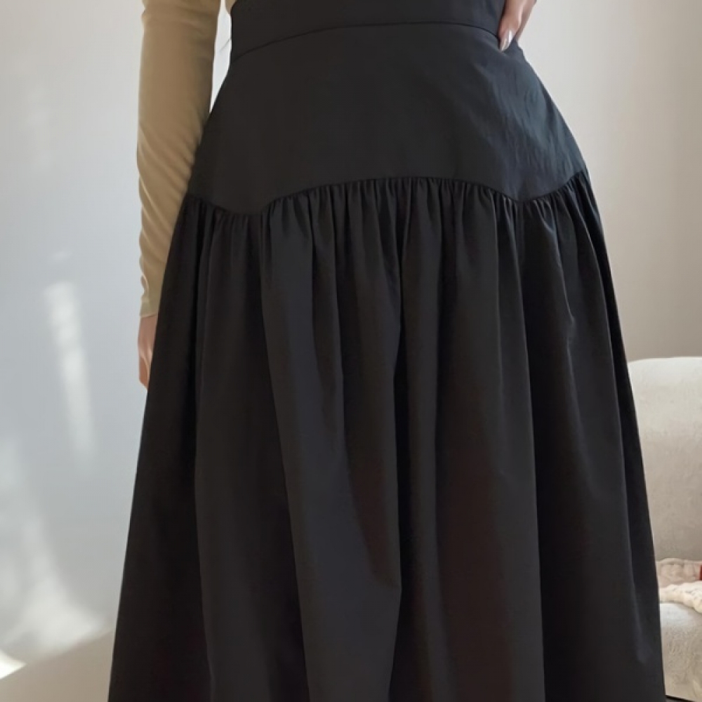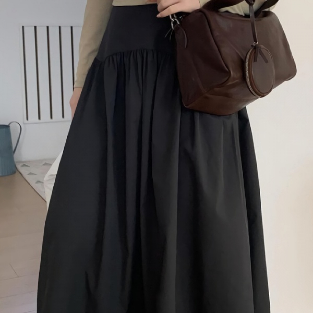 여성 셔링 뒷밴딩 플레어 롱 스커트