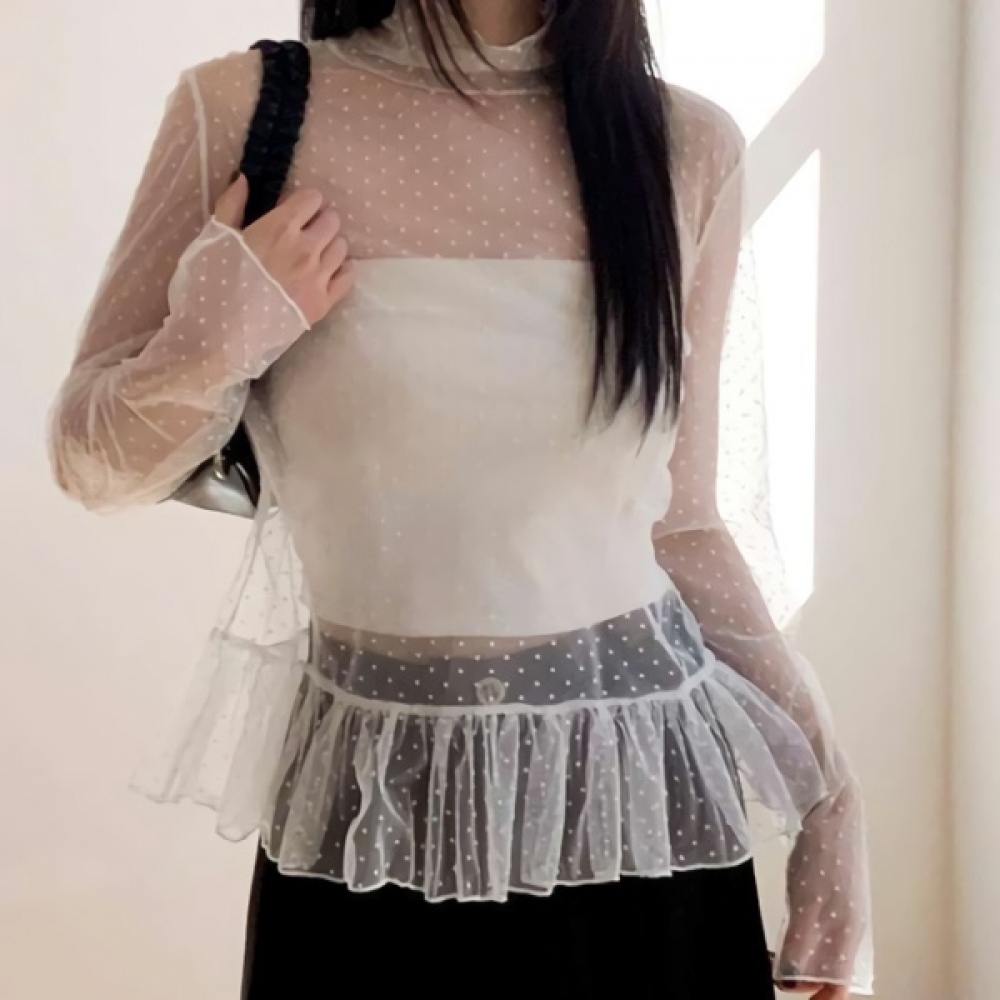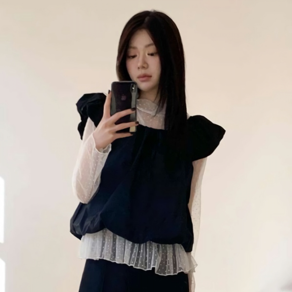 여성 봄 여름 핀턱 프릴 캉캉 블라우스