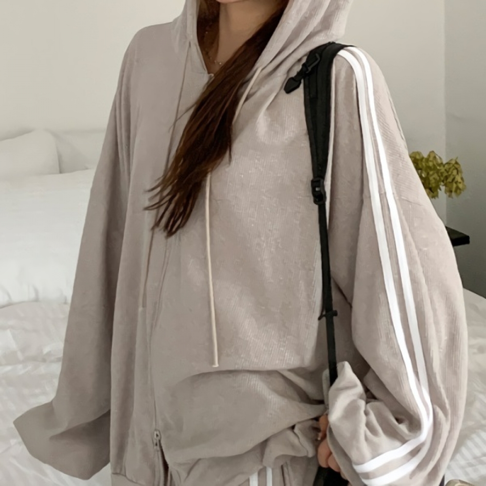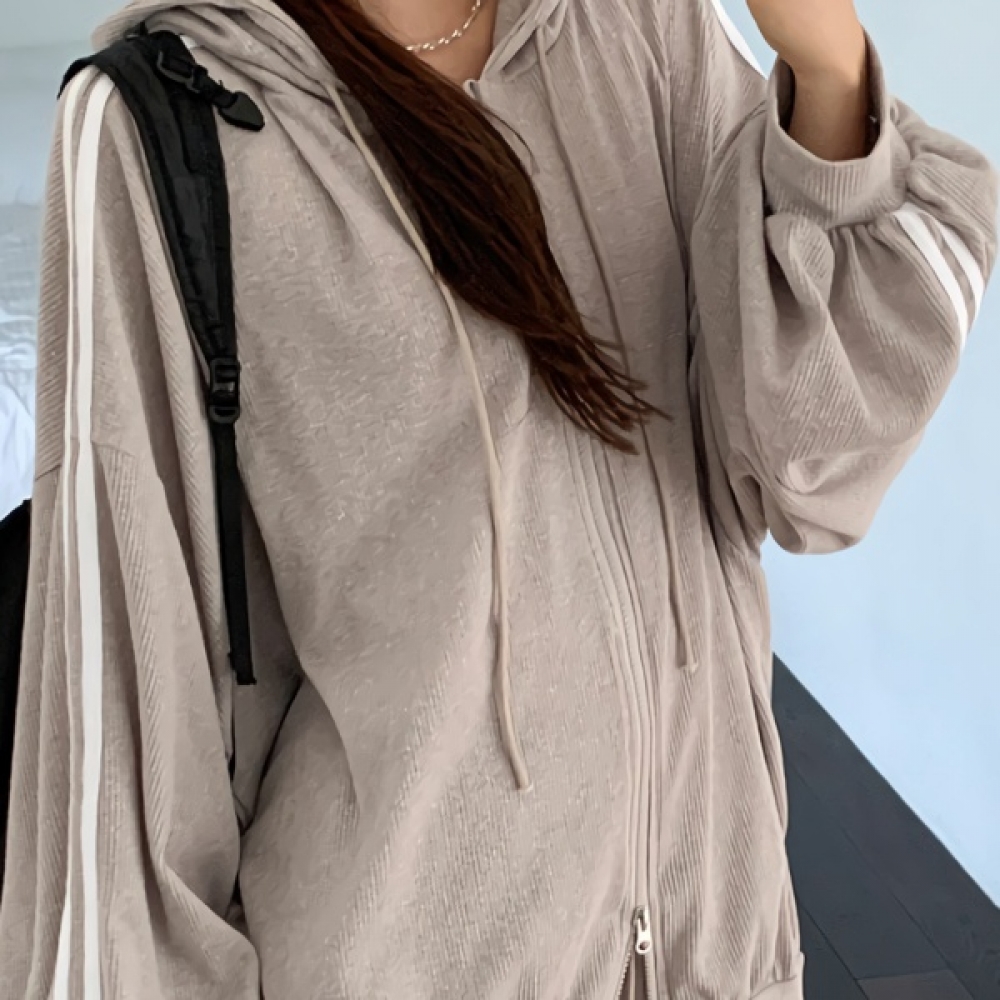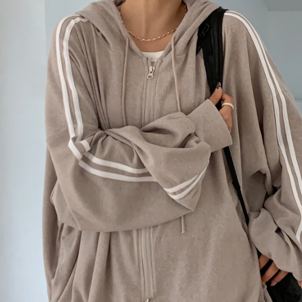 여성 봄 트랙 오버핏 와플 후드집업