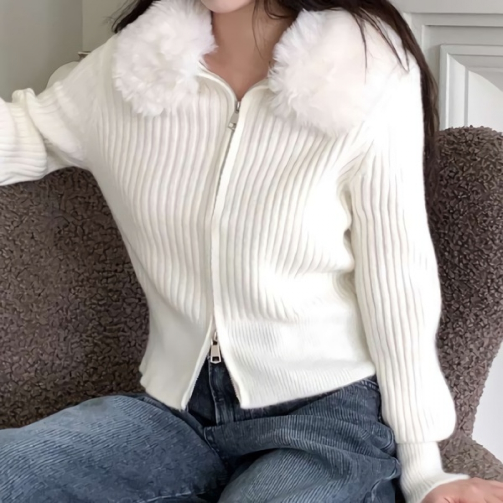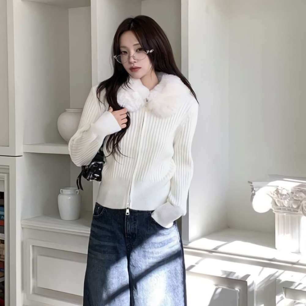 여성 봄 데일리 퍼 카라 골지 니트 집업