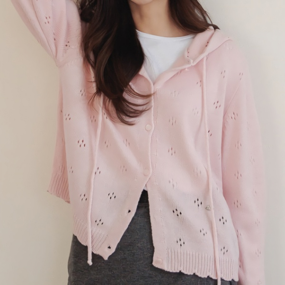 여성 봄 스카시 펀칭 반팔 니트 가디건