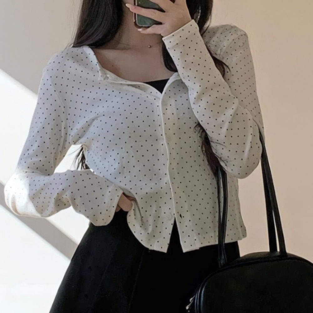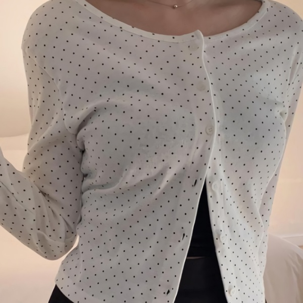여성 슬림핏 도트 라운드 세미크롭 가디건