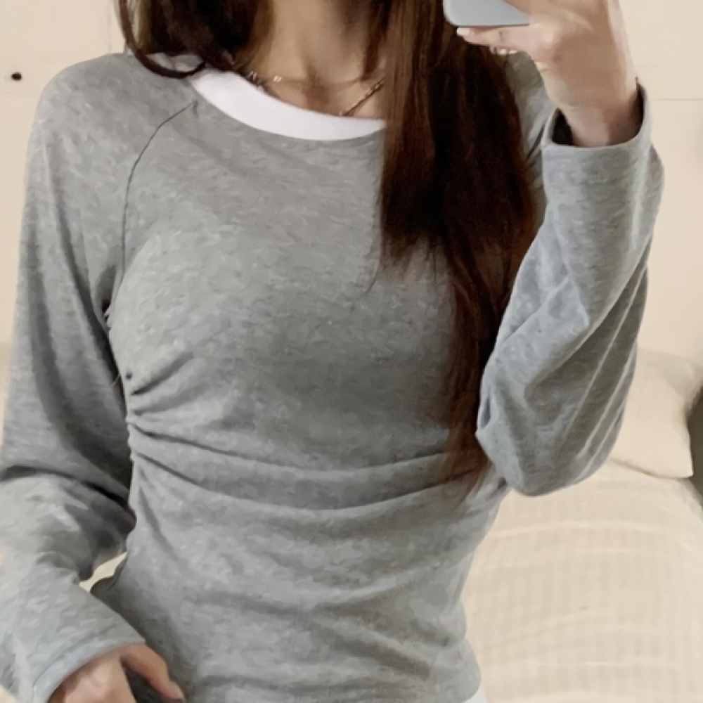 여성 언발 배색 레이어드 옆셔링 슬림 티셔츠
