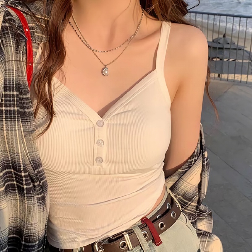 여성 봄 여름 브이넥 골지 캡나시