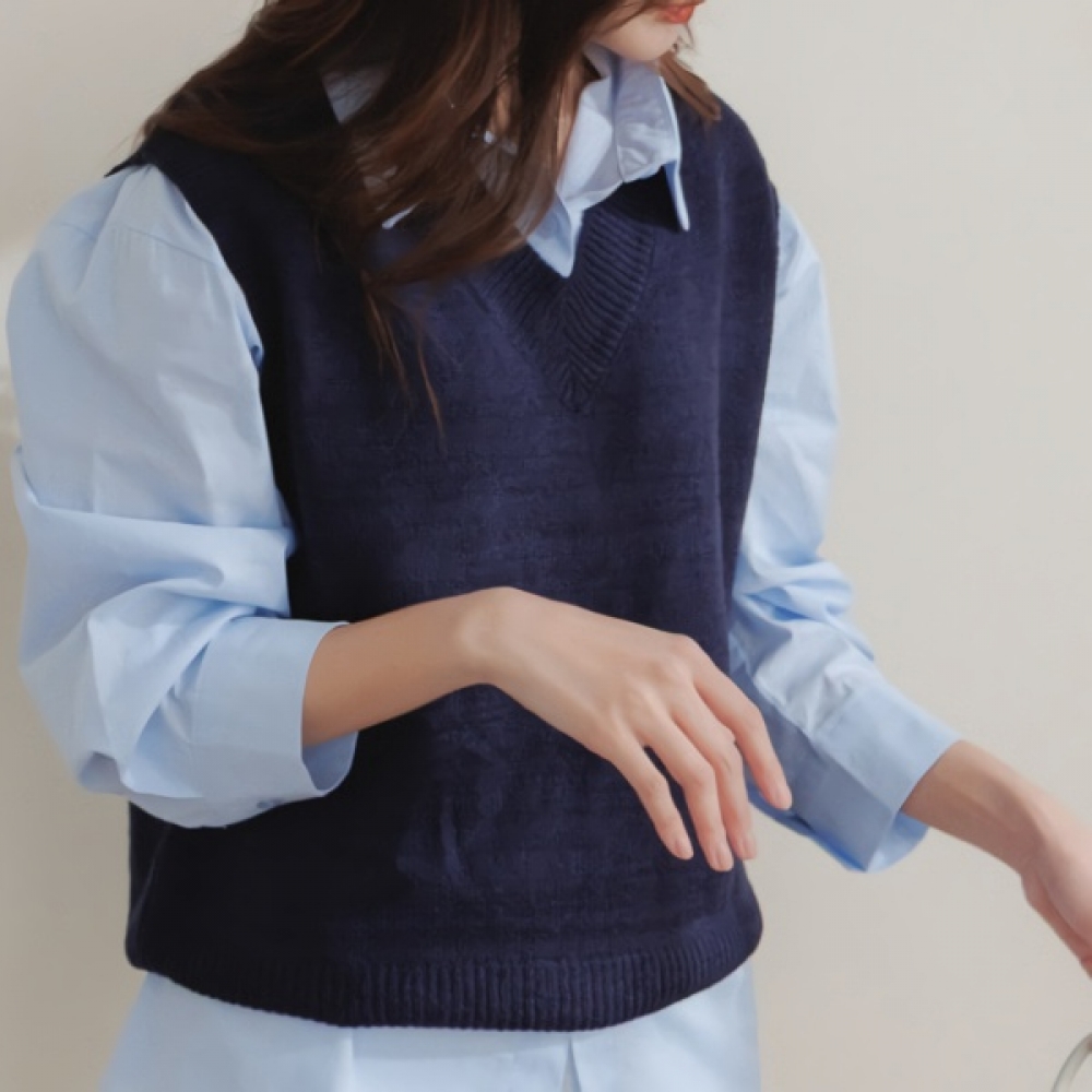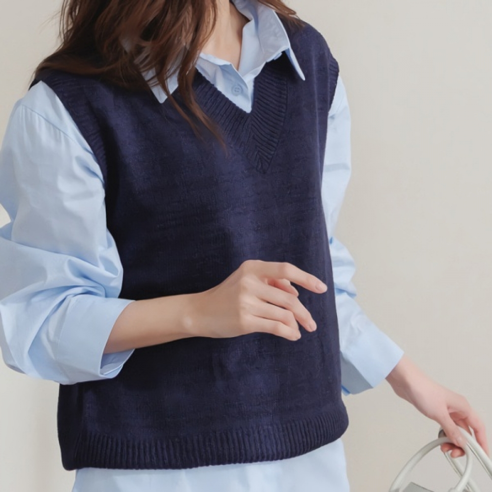 여성 봄 여름 부클 루즈핏 니트 조끼 베스트