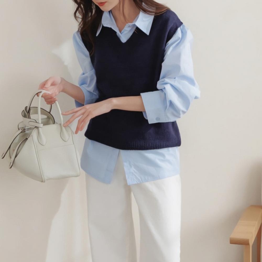 여성 봄 여름 배색 나시 레이어드 니트