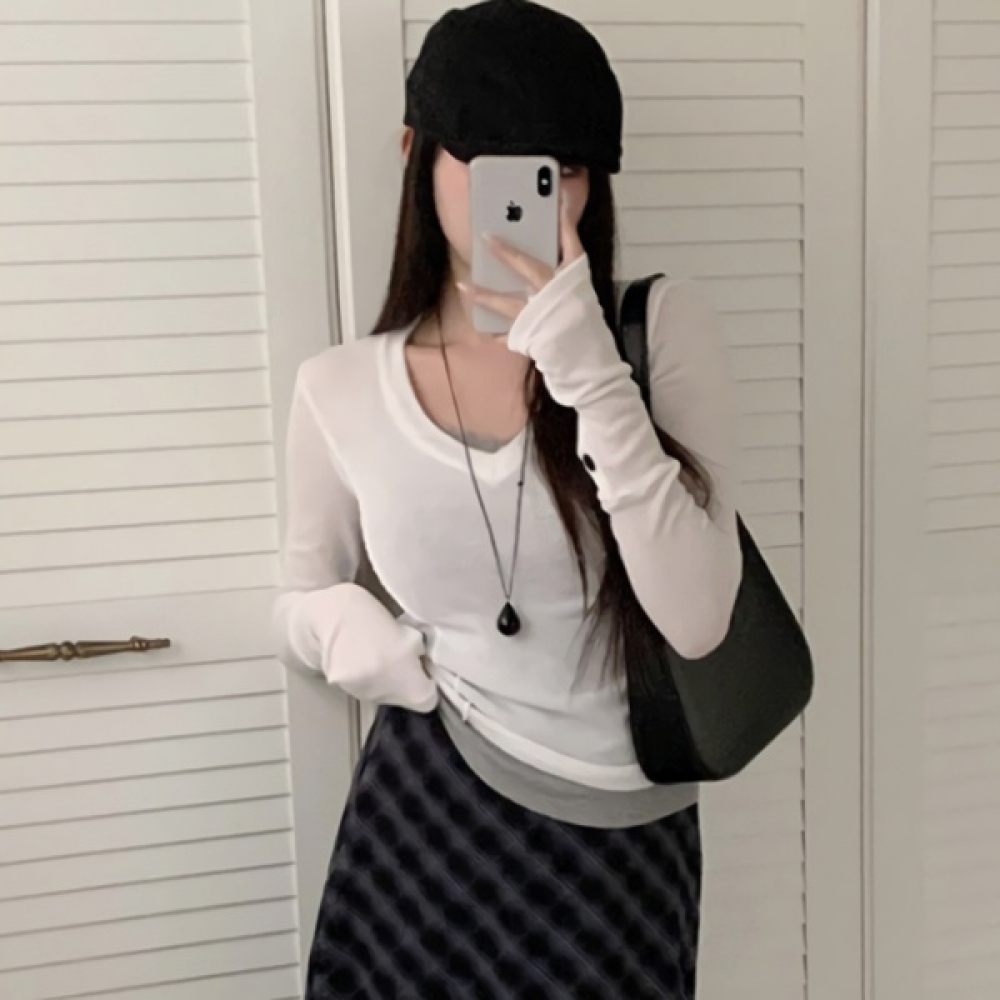 여성 봄 데일리 소매 버튼 브이넥 슬림 니트