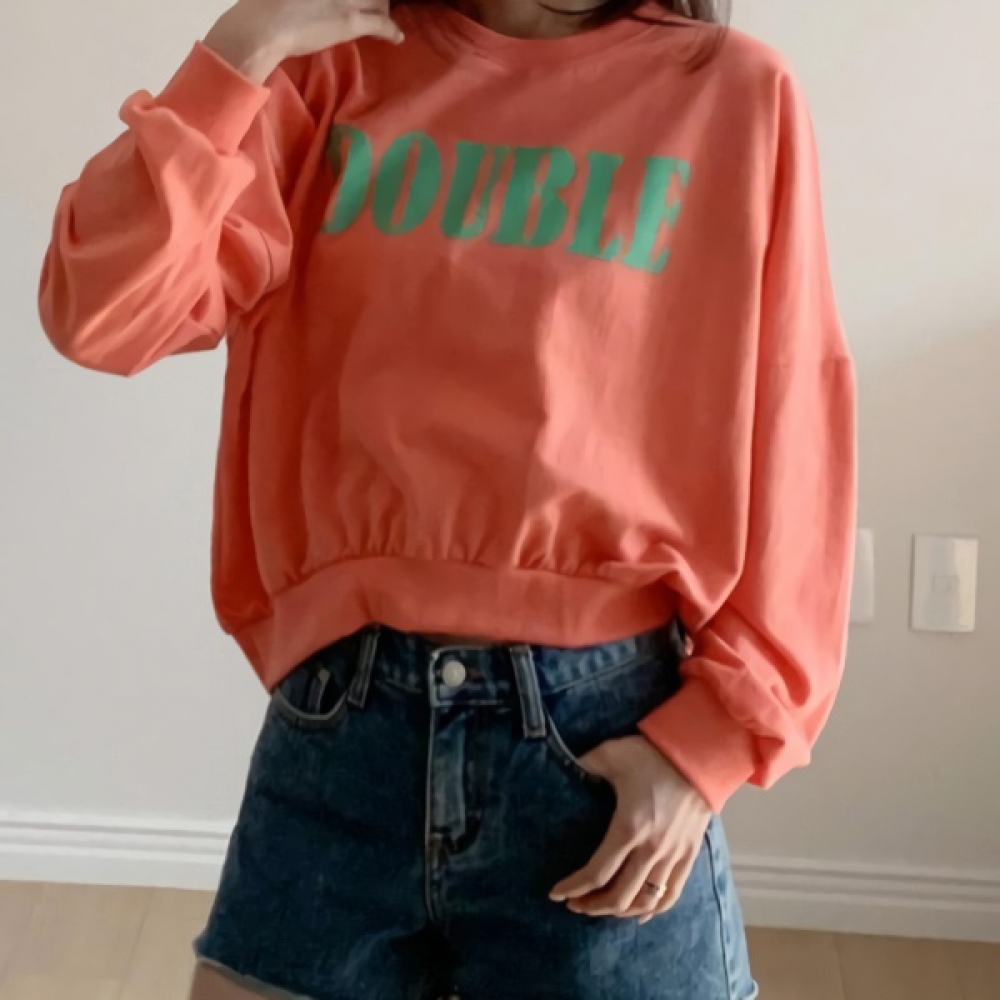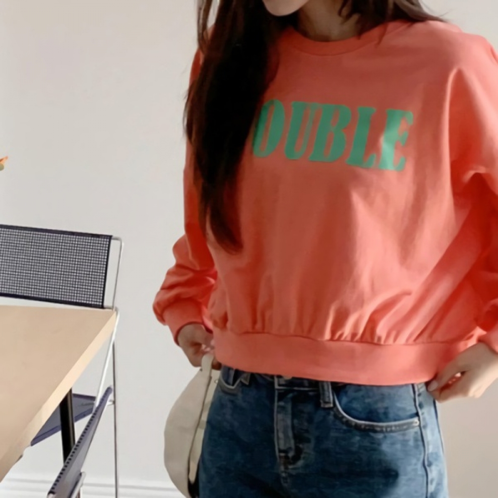 여성 엠보 레터링 오버핏 세미 크롭 맨투맨