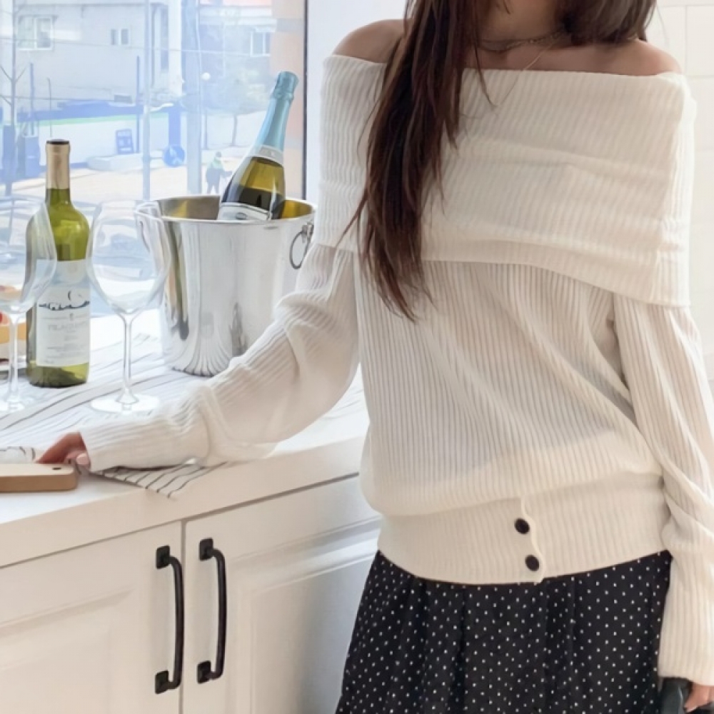여성 버튼 포인트 루즈핏 골지 오프숄더 맨투맨