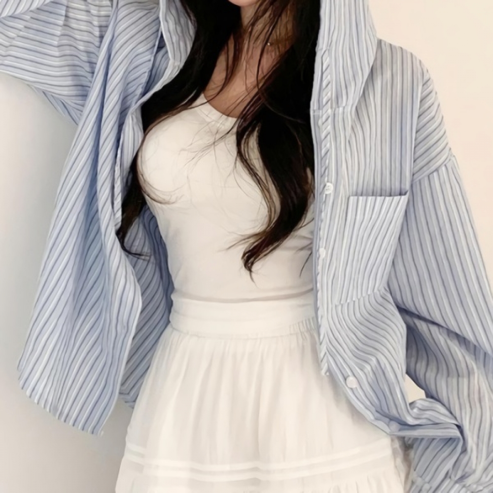 여성 봄 여름 오버핏 무지 포켓 코튼 셔츠