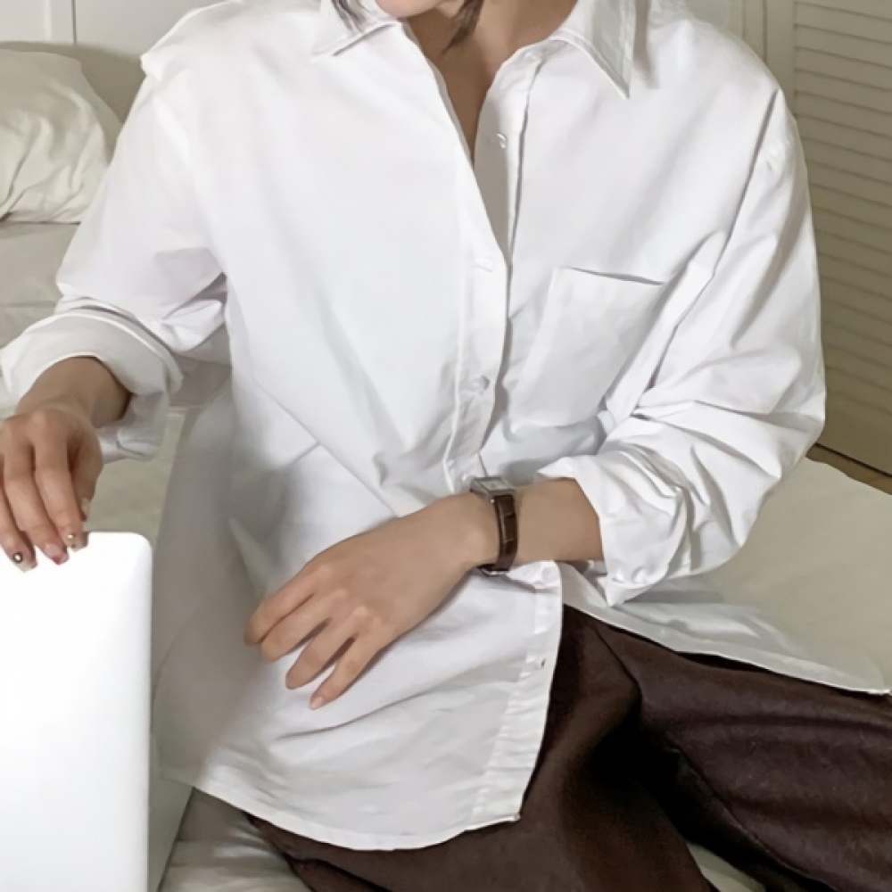 여성 봄 여름 오버핏 무지 포켓 코튼 셔츠