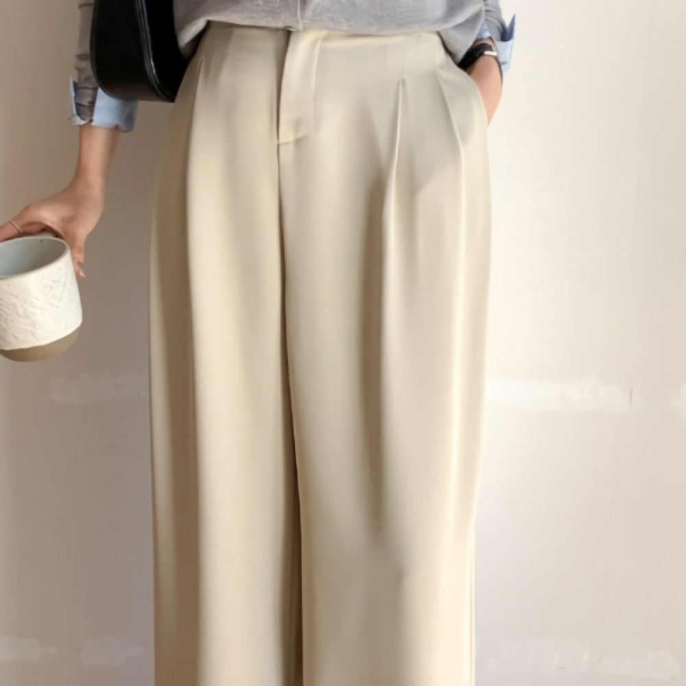 여성 봄 핀턱 세미 와이드 밴딩 슬랙스