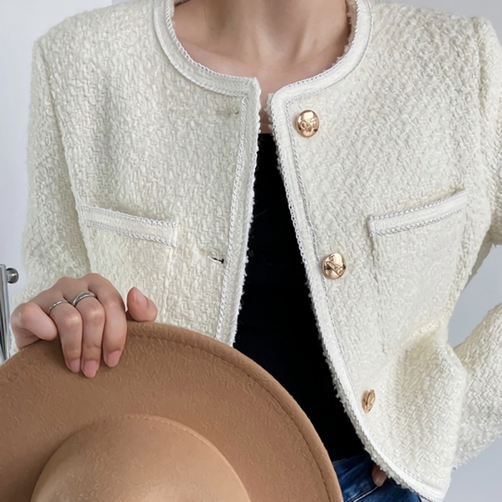 여성 봄 여름 데일리 울 트위드 크롭 자켓