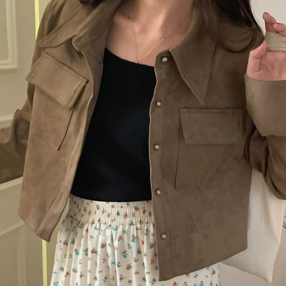 여성 봄 여름 데일리 스웨이드 크롭 자켓