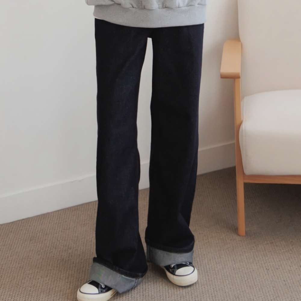 여성 스티치 일자핏 와이드 데님 팬츠