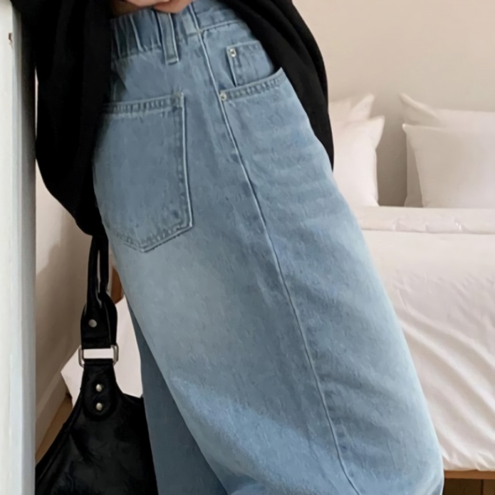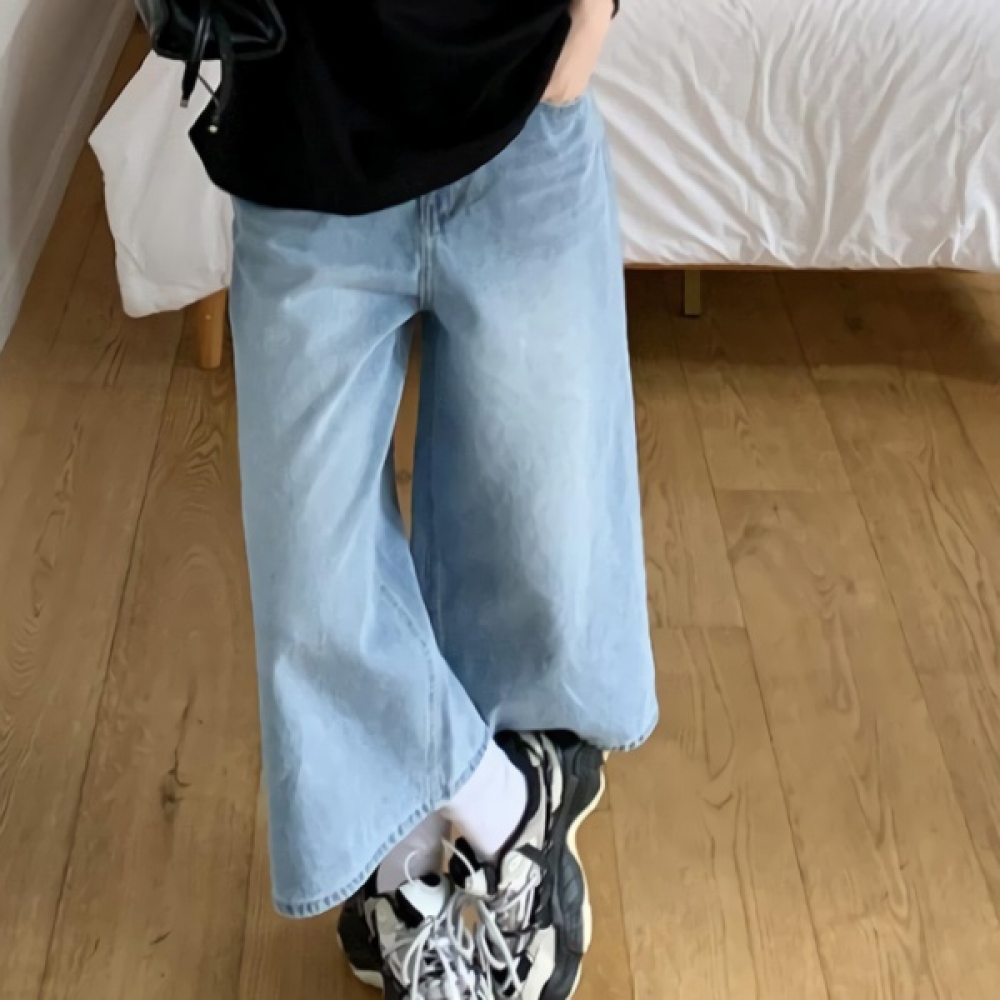 여성 워싱 스트레이트 와이드 데님 팬츠