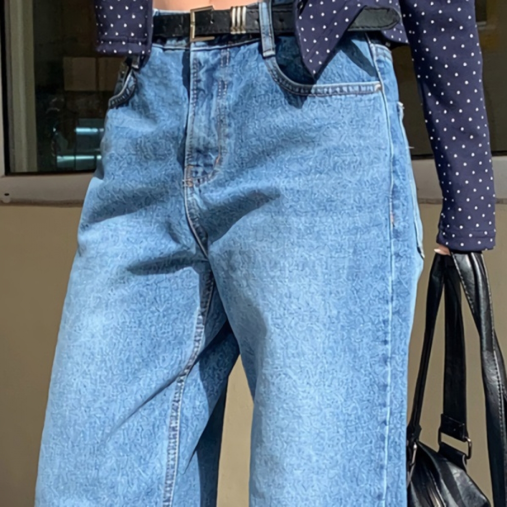 여성 워싱 스트레이트 와이드 데님 팬츠