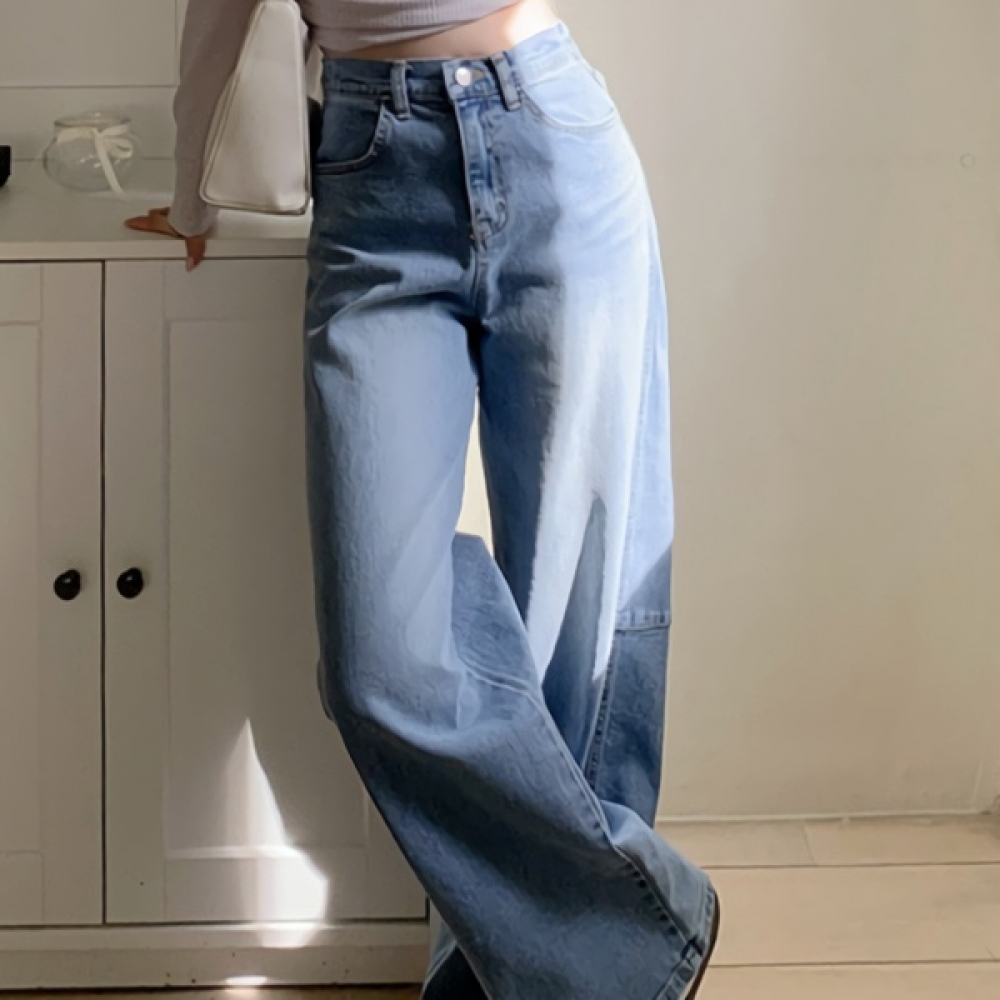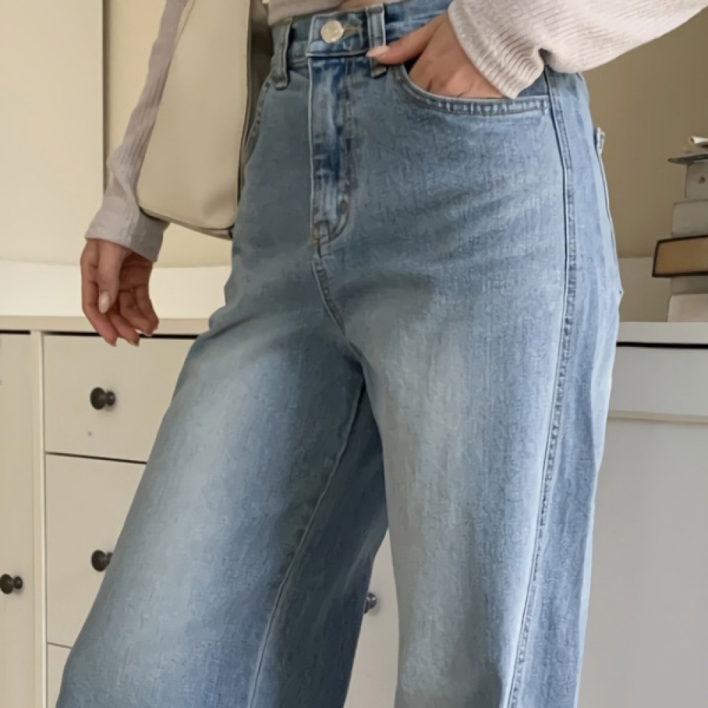 여성 워싱 스트레이트 와이드 데님 팬츠