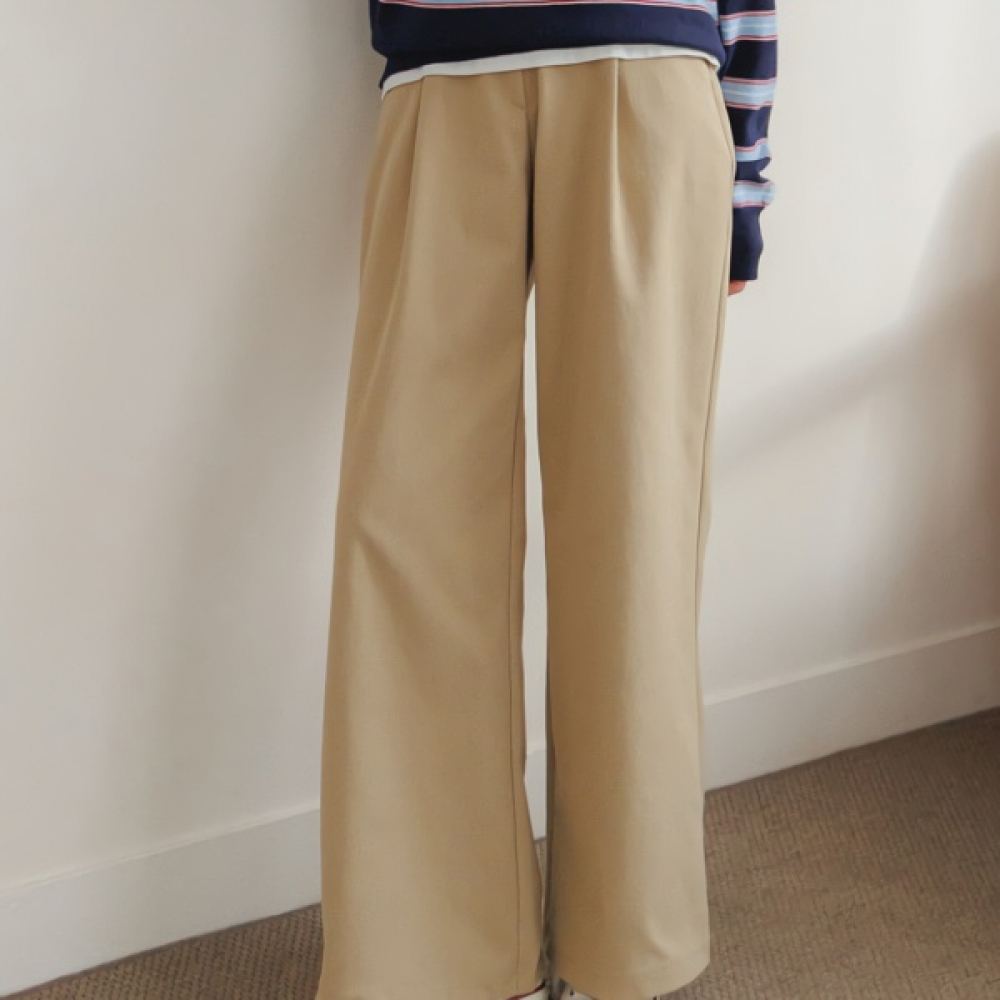 여성 봄 핀턱 세미 와이드 밴딩 슬랙스