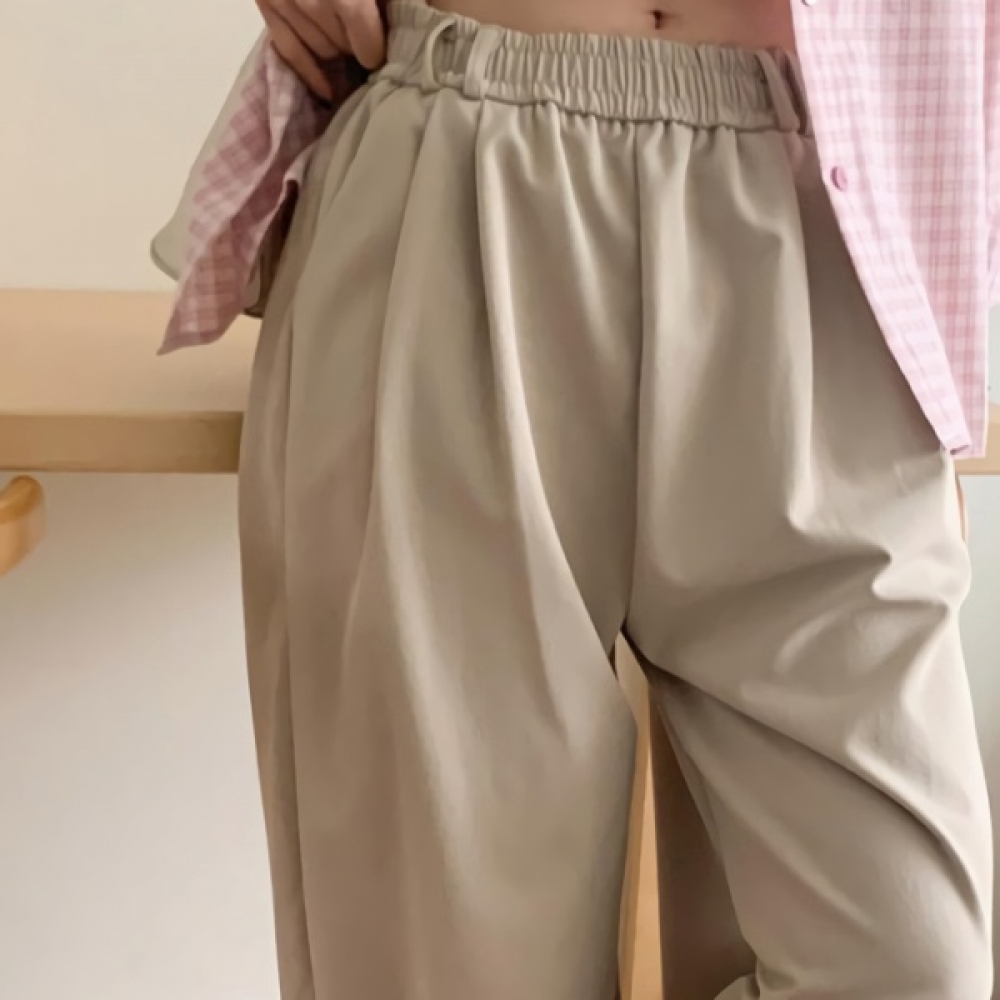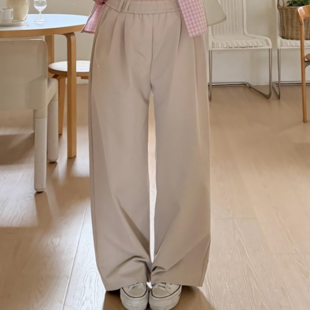 여성 봄 핀턱 세미 와이드 밴딩 슬랙스